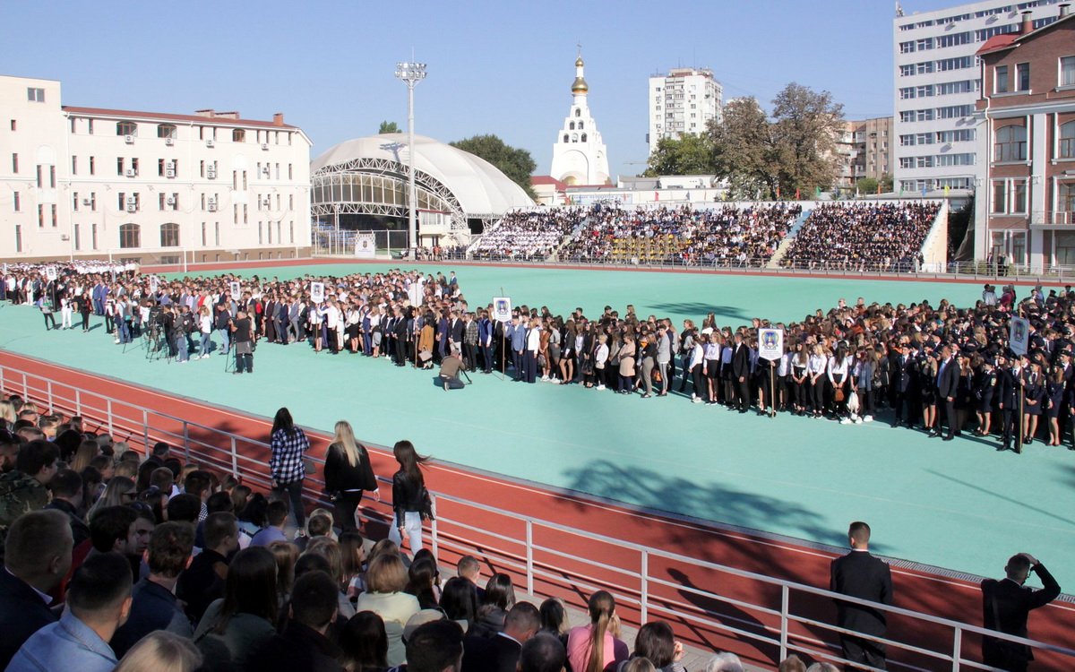 Трибуны стадиона, на котором выстроились по факультетам первокурсники во главе с деканами, были украшены бело-голубыми гирляндами шаров. На самих трибунах находились многочисленные гости праздника – мамы и папы, даже бабушки и дедушки, которые пришли, чтобы быть рядом со своими детьми в этот важный в их жизни день.