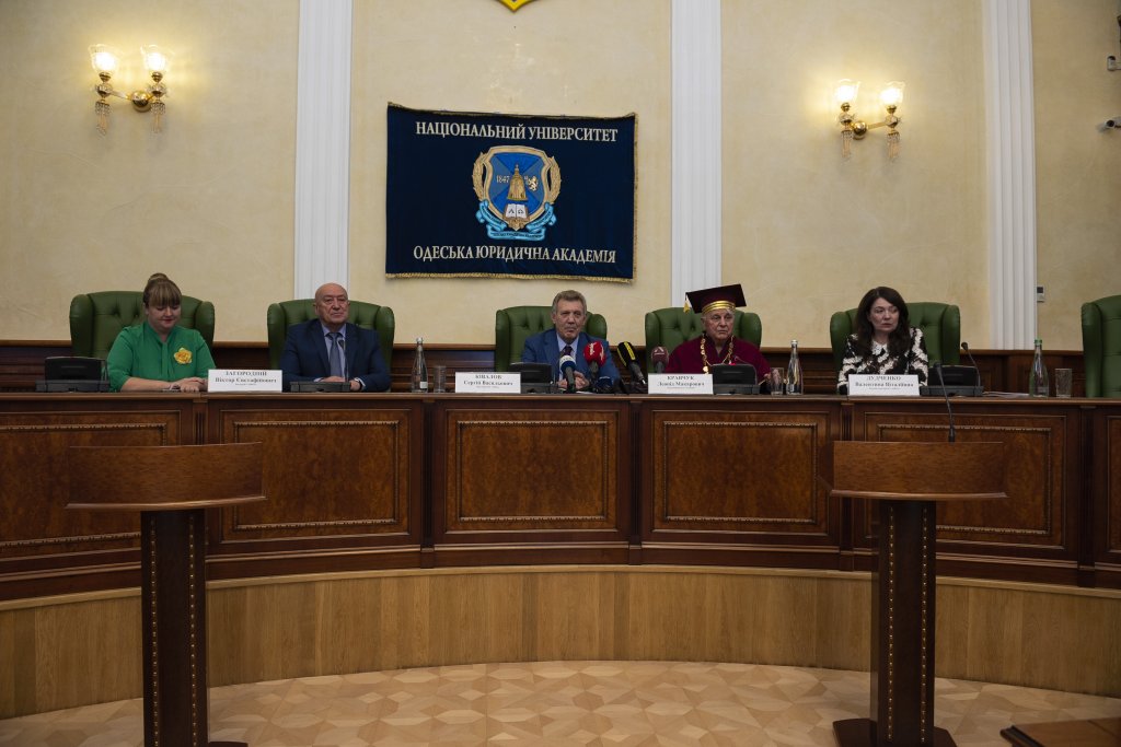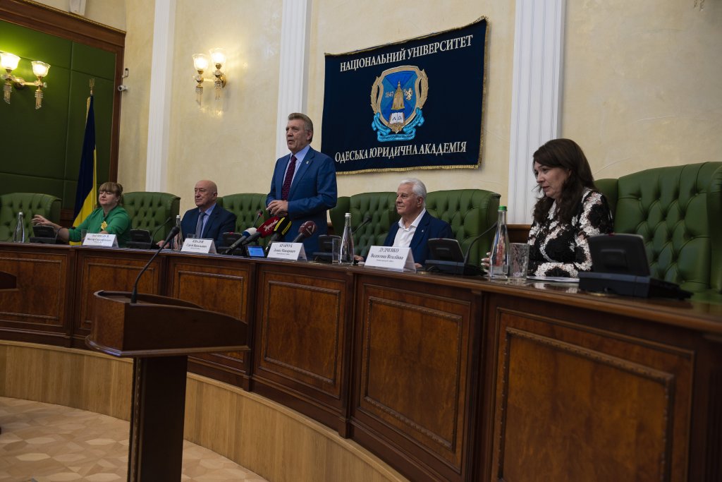 Сегодняшний день – особенный в истории Национального университета «Одесская юридическая академия», ведь мы принимаем в стенах alma mater выдающегося государственного деятеля – первого Президента независимой Украины Леонида Макаровича Кравчука. Мы гордимся, что наш университет посетил человек, которого смело можно назвать носителем новейшей истории нашей страны, человека, который стоял у истоков государственного строительства независимой Украины и внёс огромный вклад в миротворческую деятельность на всём европейском континенте, став одни из основателей движения за отказ от ядерного оружия. Его плодотворные труды на благо родного государства не ограничились президентским сроком, даже давно будучи вне политики и не привязываясь ни к какой партии, он продолжал принимать активное участие в эпохальных для жизни нашей страны событиях, всегда оставаясь на стороне государственных интересов и интересов всех украинских граждан. Даже в самые трудные переломные моменты политической нестабильности Леонид Макарович твёрдо стоял на позициях объединения украинского народа, будучи уверенным, что только в единстве наша сила и наше будущее.