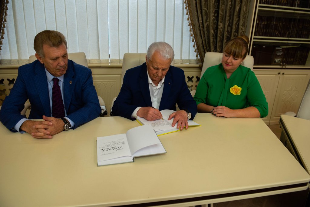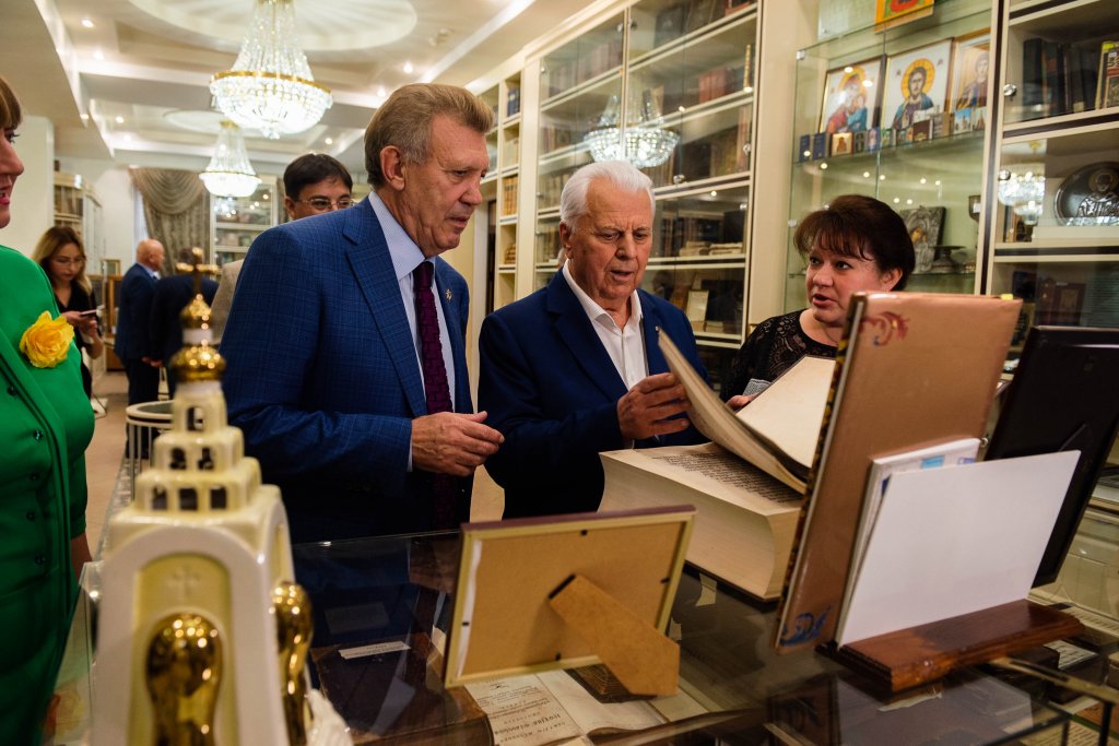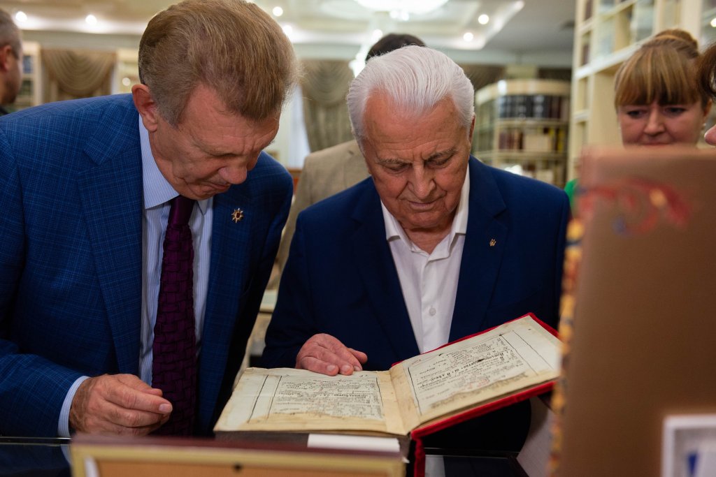 Однако, больше всего его впечатлил уникальный Музей редкой книги, где хранится точная копия Пересопницкого Евангелие, на котором традиционно дает клятву новоизбранный Президент нашей страны. Леонид Макарович презентовал авторские книги, передав экземпляры в музей и научную библиотеку.
