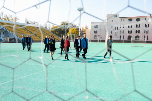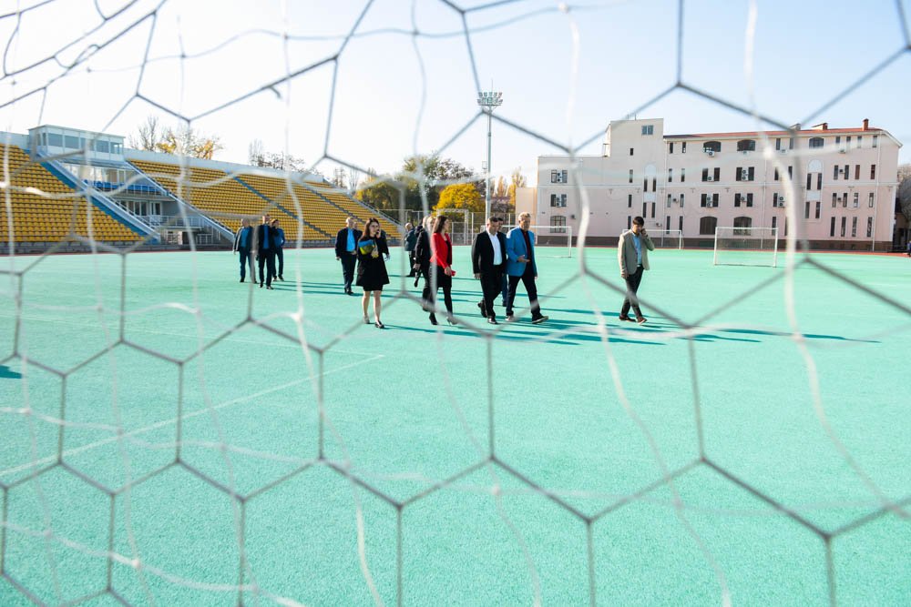 Осмотрев спортивные площадки и стадион НУ «ОЮА», гости были немало впечатлены:
