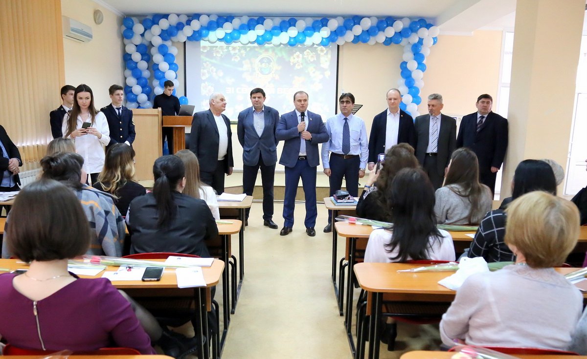 Праздник начинался уже при входе в нарядный актовый зал, украшенный белыми и синими шарами. Каждую даму приветствовали и поздравляли студенты, вручая весенние тюльпаны. Многочисленные поздравления, пожелания добра и любви, цветы и подарки – всего этого было вдоволь.