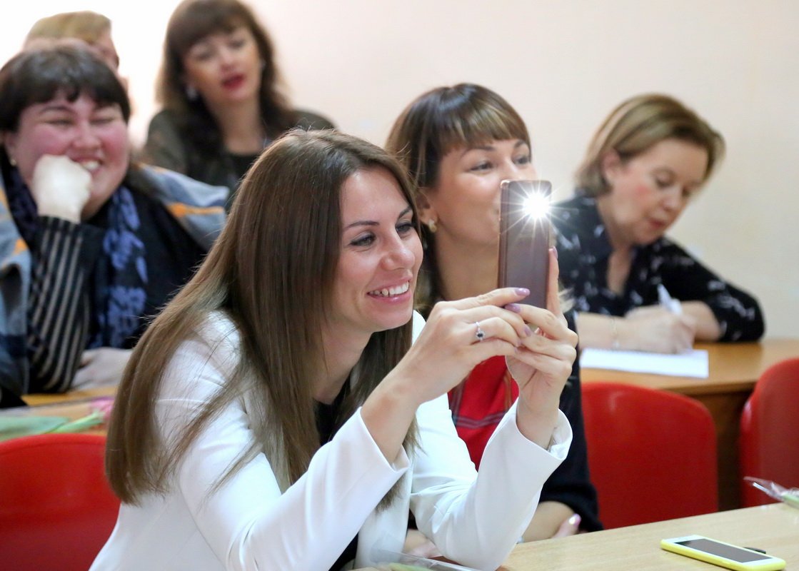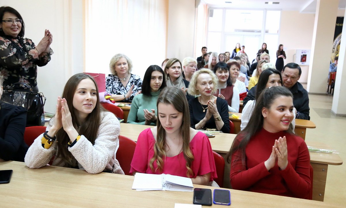 Не позволив себе сесть в такой торжественный день, мужчины, стоя и волнуясь, обращались поочередно к прекрасной половине коллектива с теплыми пожеланиями. Половине?? Оказалось, что женщин, работающих в вузе, – 85 процентов! И в самом деле: кому, как не опытным, знающим женщинам воспитывать и обучать молодых людей, давать знания, готовить специалистов?!