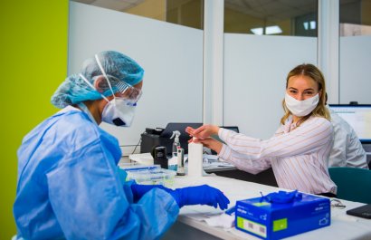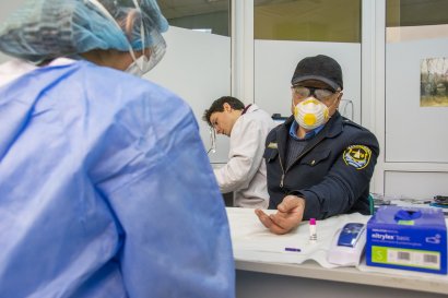 Сама процедура тестирование занимает около 15 минут. Каждому посетителю клиники на входе измеряют при помощи бесконтактного термометра температуру, а также уровень кислорода в крови и пульс. Затем уже в процедурном кабинете производят забор крови и тут же делают анализ. Пока врач заполняет данные посетителя, экспресс-тест уже показывает результат. У всех сегодняшних посетителей результат был отрицательный.